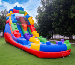 Turn your next event into a colorful, high-energy adventure with the 18ft Brick Blast Slide! Designed with a fun building-block theme and bold, vibrant colors, this towering inflatable is a guaranteed showstopper for your party!