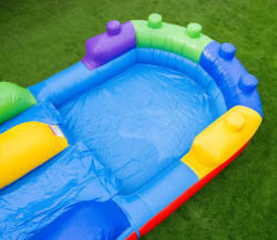 Kids climb up the enclosed ladder to the top before racing down the fast, exciting slide into a refreshing pool below. The tall design delivers big thrills while the safety features like high side walls and no-jump mesh netting at the top keep riders secure and smiling all day long.